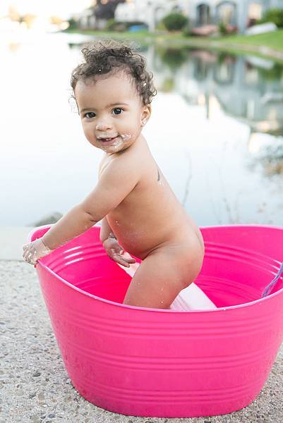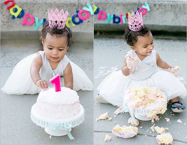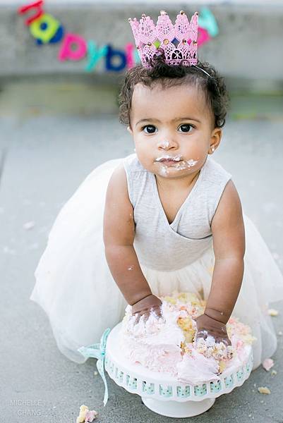 美國這邊有個習俗, 就是在小孩一歲生日的時候讓她砸蛋糕